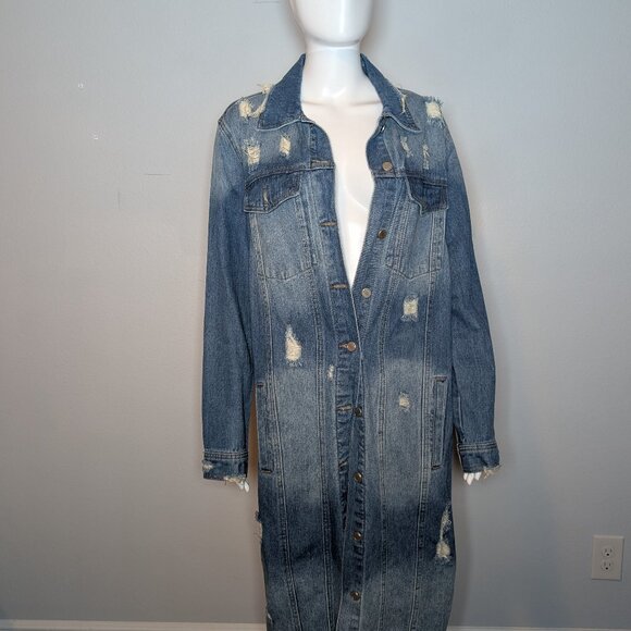 Fashion Nova Distressed Longline Denim Jacket – Size Medium