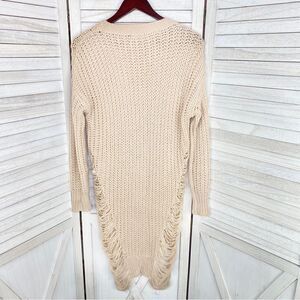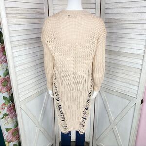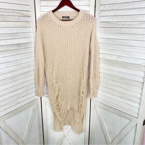 Fashion Nova Distressed Shredded Long Sweater Tan Medium Pullover