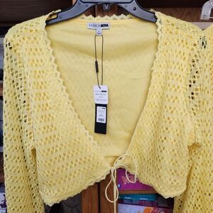 Fashion Nova Don't be Jealous Crochet Matching Set Top & Skirt Yellow 1X NWT