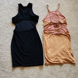 Fashion Nova Dress Bundle - 1 Black and 1Tan Backless Mini Dresses Sz M Party