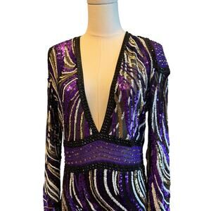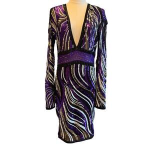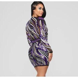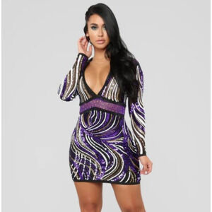 Fashion Nova Dress Womens XL Purple Black Look So Good Sequin Bodycon Event