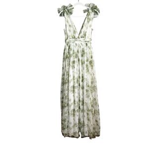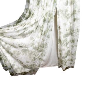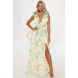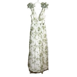 Fashion Nova Evelyn Tulle Gown | Sage Green Floral Prom Maxi Dress XS Side Slit