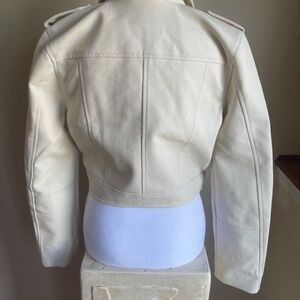 Fashion Nova Fall Vibes Faux Leather Crop Jacket With Belt - Color Cream