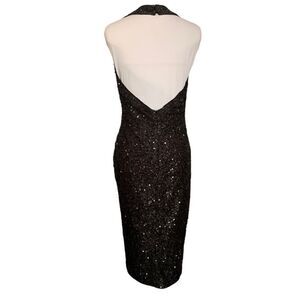 Fashion Nova Faux Wrap Black Sequin Front Slit Halter Dress Open Back Sz M