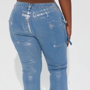 Fashion Nova Foil Bootcut Cargo Jean Size 22