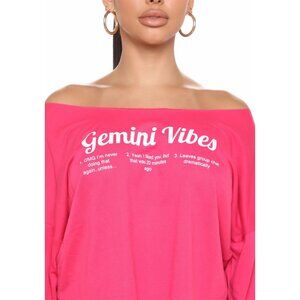 Fashion Nova ✦ Gemini Vibes Off‑Shoulder Top ✦ Fuchsia Pink Zodiac Graphic S NWT