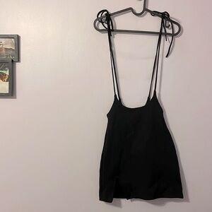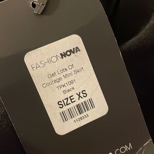 Fashion Nova Get Lots of Courage Black Mini Skirt size XS. New with tags! Super cute look. Dress it up or down. See pictures for measurements. Spaghetti strap tie on shoulder adjustable. Slit front. Hidden back zipper.
