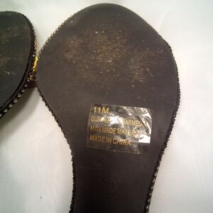 These Fashion Nova sandals feature a sleek gold design with a minimalist slip-on style. The flat sole ensures comfort, while the metallic gold straps add a touch of elegance. Perfect for casual outings, these sandals are both stylish and versatile.