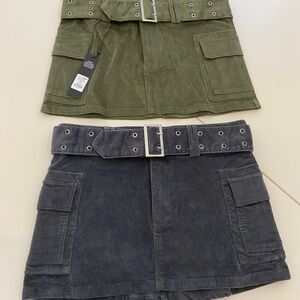 Trendy gray mini skirt with belt. Features side pockets. Perfect for any occasion. Size Large !! Slightly stretchy