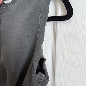 Stylish gray muscle tee with a bright orange accent. Ideal for casual outings.size small