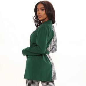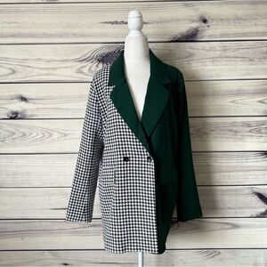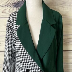 Fashion Nova Green Black & White Houndstooth Patterned Boxy Boyfriend Blazer