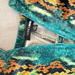 Fashion Nova Green Gold Spaghetti Strap Velvet Snake Print Jumpsuit Size XS
