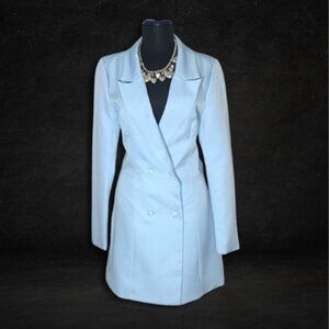 Fashion Nova Haliee Blazer Mini Dress Trench Coat Light Blue M