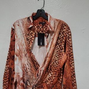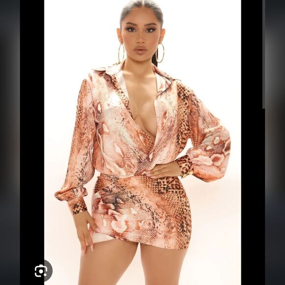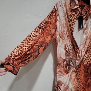 Fashion Nova Hearts Desire Satin Mini Dress in Rust Snakeskin Size M