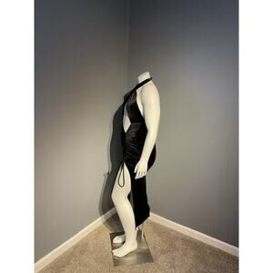 Fashion Nova Higher Standards Black Velvet Midi Dress Size Xs Peekaboo Sexy
