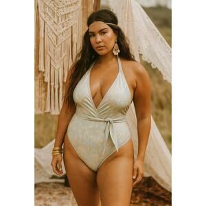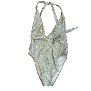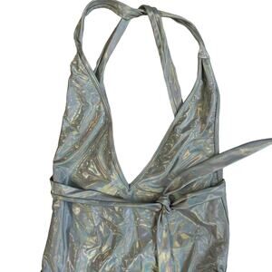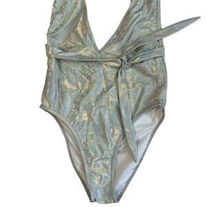 Fashion Nova Holographic Metallic Plunge V-neck One Piece Swimsuit Med Like New