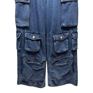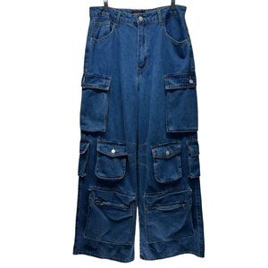 Fashion Nova Jeans Size 13 Lily High Rise Cargo Medium Blue Wash Baggy Loose