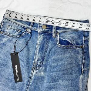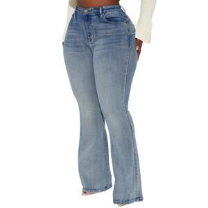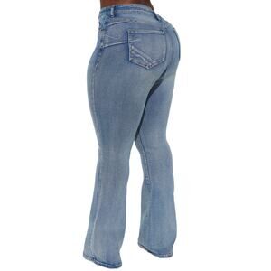 Fashion Nova Jeans Size 7 Gemma Sculpting Stretch Flare Wash Distressed Blue New