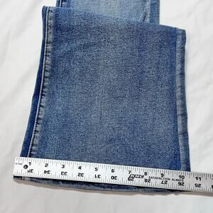 Introducing a pair of Fashion Nova Gemma Sculpting Stretch Flare Jeans in Size 7, in distressed blue wash. These jeans are designed for a flattering fit and feature a sculpting stretch for added comfort. They are brand new.