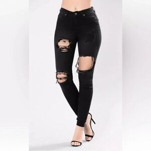 Fashion Nova Jeans Skinny Distressed Denim Destroyed Pants High Waist Sz 9