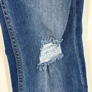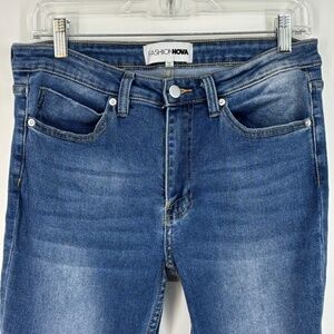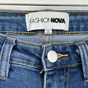Fashion Nova Juniors Size 9 Mid Rise Flare Jeans Medium Blue Distressed 5-Pocket