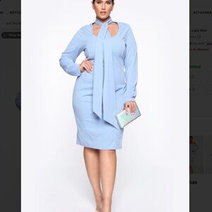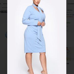 Fashion Nova Just The Way I Am Light Blue Neck Tie Dress 2X NWT