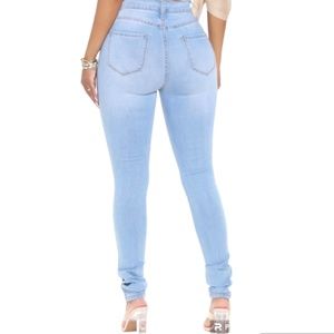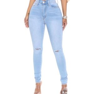Fashion Nova Kiara Slit Knee Stretch Skinny Jeans Light Blue Wash