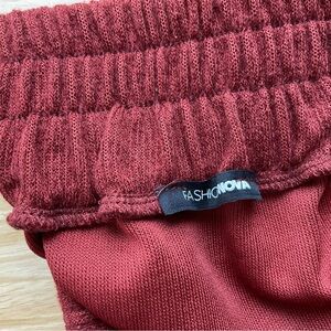 Fashion Nova Knit Pull On Skirt. Womens Size Medium. Elastic waistband with faux drawstring. There is some pilling on the waistband. 96% Polyester, 4% Cotton. Please see all photos for any flaws or conditions. I3