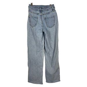 Fashion Nova Light Wash High Waisted Wide Leg Jeans Attached Belt Womens JR Sz 1