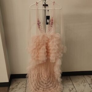 Fashion Nova Luxe Pink Tulle Ruffle Gown Beaded Maxi Dress NWT Size S