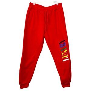 Fashion Nova Luxury Drawstring Cotton Blend Fleece Jogger Sweatpants Red Size XL