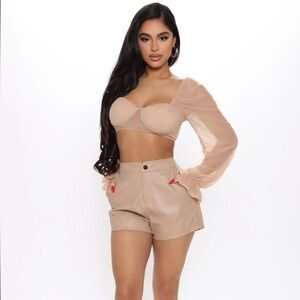 SOLD OUT Fashion Nova Make the Night Last Taupe Crop Top & Faux Leather High Waist Shorts Set XS