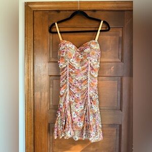 Fashion Nova Marilynne Mesh Ruched Mini Dress - Mustard Floral