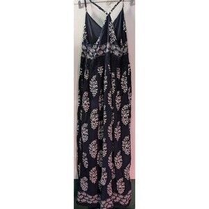 Fashion Nova Maxi Cutout Dress Size 1x Blue White Floral Flowy Front Slit (960D)