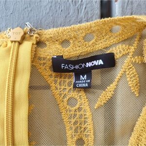 Fashion Nova Maxi Dress Sheer Lace Floral Print Flutter Sleeve Back Zip Yellow M