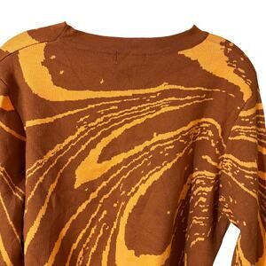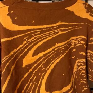 retro top, marble pattern, long sleeve tee, warm tones, stretchy top, artsy print, statement top, swirl print,