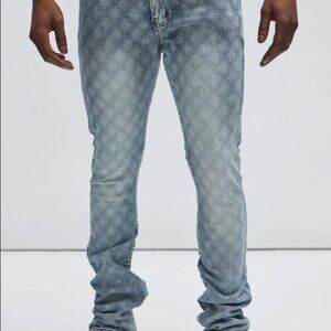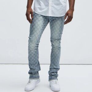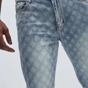 Fashion Nova Men I Be Jeweled Stacked Skinny Flare Jeans - Light Blue 32