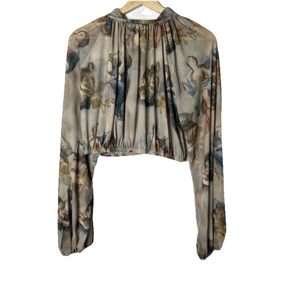 Fashion Nova Mesh All Over Graphic Top Womens Sz M Artsy Art To Wear Cropped