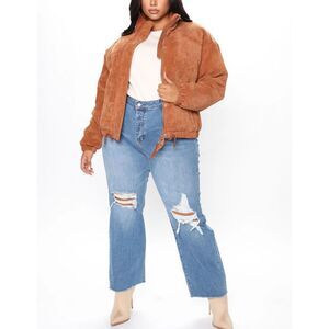 Fashion Nova NWT Camel High Neck Cover Your Tracks Puffer Jacket Size 2X
