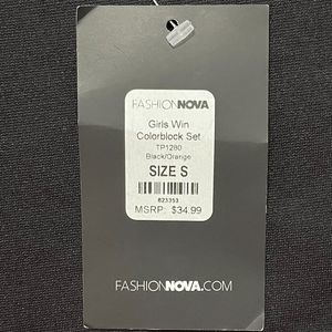 Fashion Nova NWT Girls Win Colorblock 2 Pc Set Shorts & Crop Top Black Orange S