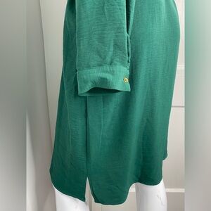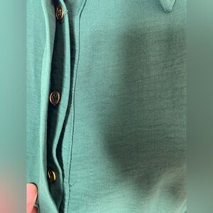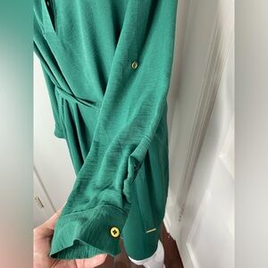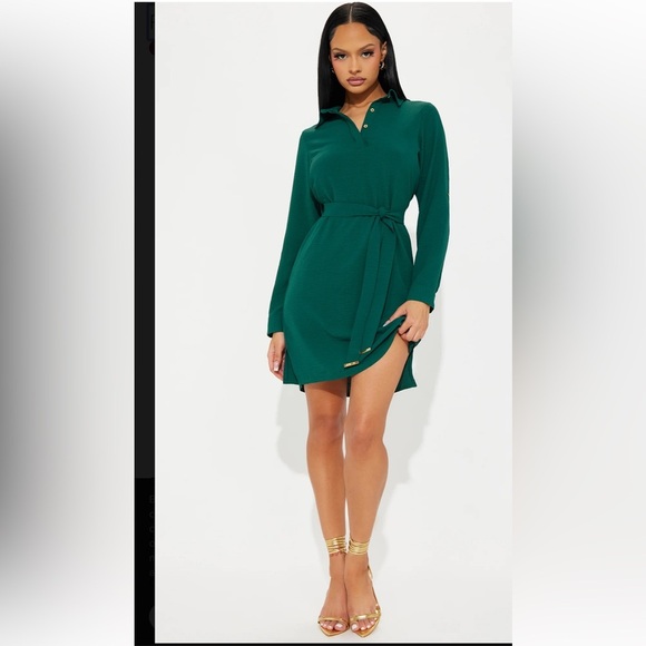 Fashion Nova NWT Hunter Green Mini Shirt Dress with gold embellishments
