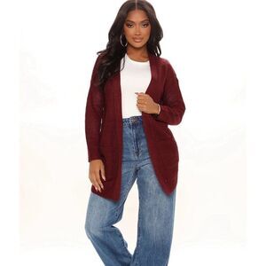 Fashion Nova NWT Medium Red Duster Comfy Knit Long Sleeve Cardigan Fall Chic