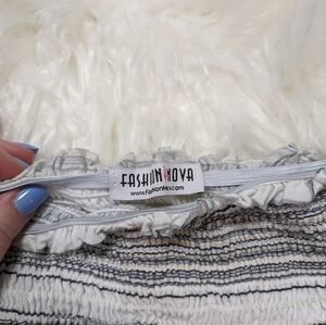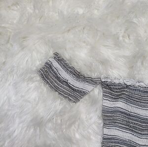 Fashion Nova Off The Shoulder Striped White and Grey Smocked Crop Top Size M