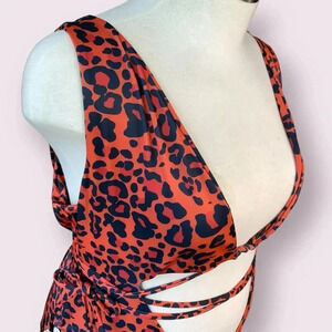 Fashion Nova One Piece Plunging Wrap Around Swimsuit Plus Size 3X Animal Print