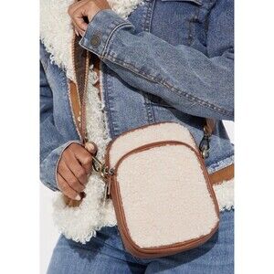Fashion Nova Open Trail Sherpa Faux Leather Crossbody Bag Brown NEW