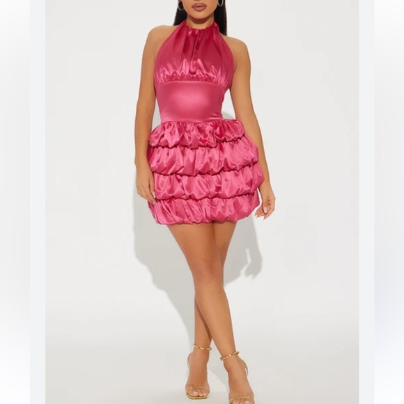 Fashion Nova Out The Gallery Satin Bubble Mini Dress Pink Bubble party prom Y2K