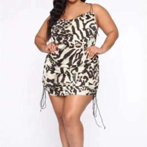 Fashion Nova Paw At My Strings Dress Animal Print Ruched Tie Sides Mini Midi NWT
