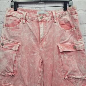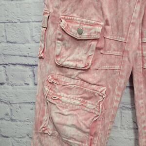 Fashion Nova Pink Acid Wash Cargo Jeans Size 11 Pockets Cinch Ankle Heavy Denim