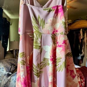 Chic floral dress with cutout design. Features vibrant pink and green floral pattern. Perfect for a stylish look. NWOT