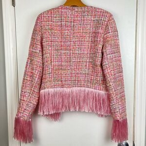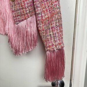 Fashion Nova Pink Tweed Fringe Jacket Boho Festival Barbie Western Preppy sz M